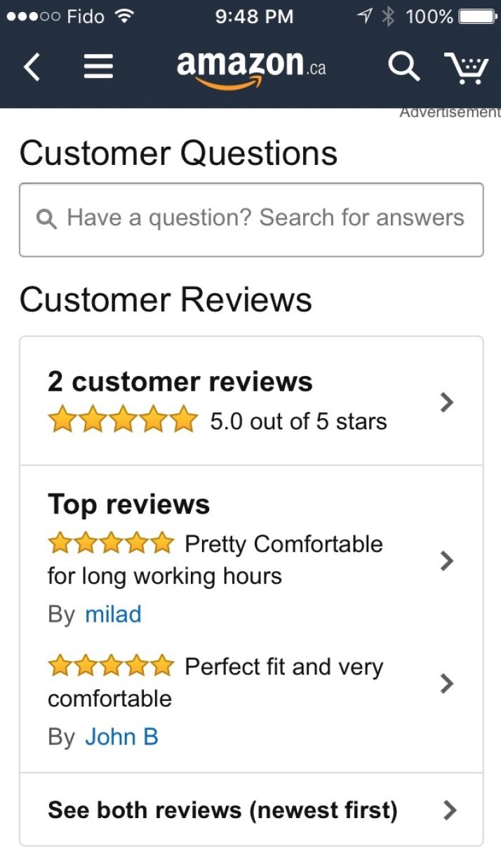 亞馬遜提供了一個聰明的例子來解決有限的屏幕空間問題:他們只是決定在應用程序中設計長滾動頁面,讓用戶向下滾動,以吸收每個單一產品頁面的所有豐富的信息。