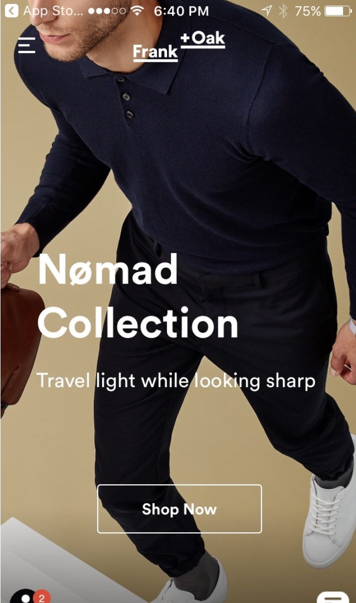 男士零售商Frank + Oak不要求您提前注冊。事實上,你可以立即開始購物。但是,當您在購物車中有某件商品想要結帳時,他們會提示您注冊,但允許進行社交登錄,這顯示可以降低購物車放棄率,因為您的購物者不必考慮 - 并記住 - 新的用戶名和密碼。